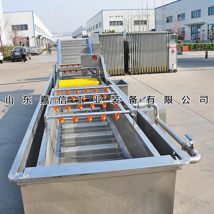設(shè)備帶有循環(huán)水泵和過濾水箱,實現(xiàn)清洗水循環(huán)使用,節(jié)約用水,根據(jù)實際生產(chǎn)情況補充更換新水。輸送帶電機,可實現(xiàn)調(diào)節(jié)變速功能,被清洗的蔬菜經(jīng)過網(wǎng)鏈輸送,自動送料,自動出料,根據(jù)生產(chǎn)需要調(diào)節(jié)輸送帶輸送程度。操作及維護簡便,工作效率高,是更理想的食品清洗設(shè)備。
