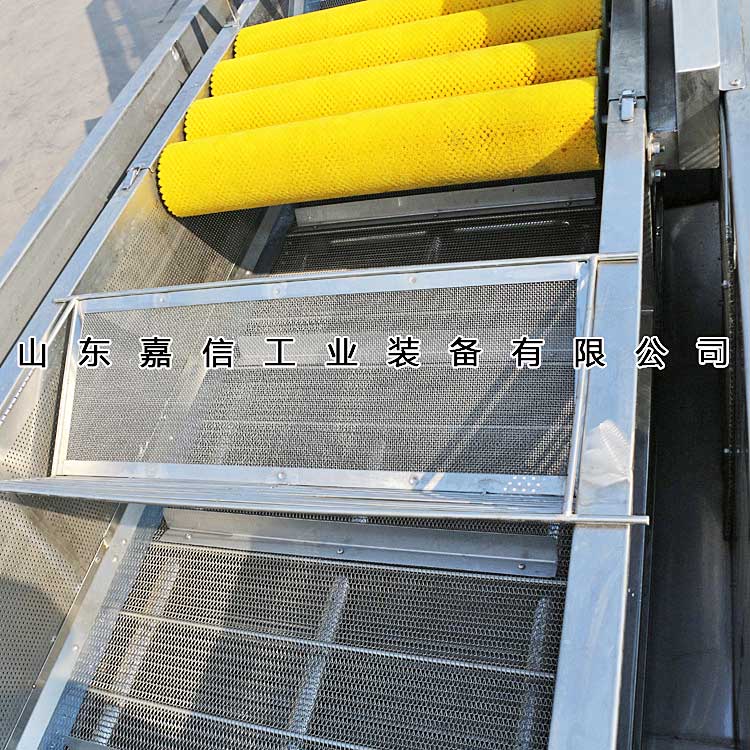 6、進(jìn)料端裝有前推裝置,角度可調(diào),使物料在槽體內(nèi)形成對(duì)流,可將產(chǎn)品清洗的更干凈,產(chǎn)品運(yùn)行速度加快。