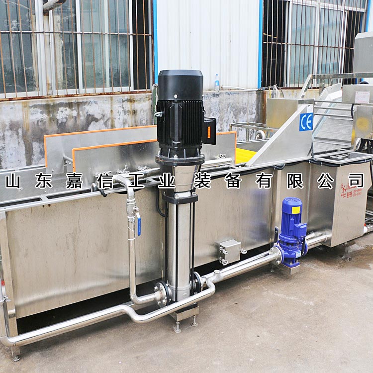 6、 進(jìn)料端裝有前推裝置,角度可調(diào),使物料在槽體內(nèi)形成對流,可將產(chǎn)品清洗的更干凈,產(chǎn)品運(yùn)行速度加快。