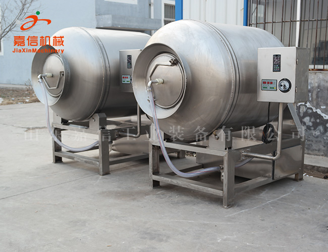 真空滾揉機是在真空狀態(tài)下,利用物理沖擊的原理,讓肉在滾筒內上下翻動,相互撞擊、摔打,達到按摩、腌漬作用,使肉均勻的吸收腌漬,提高肉的結著力及產(chǎn)品的彈性;本機具有肺呼吸功能,讓產(chǎn)品在滾筒內膨脹、縮小了往復運動,改善了肉組織的結構,提高了切面效果,增加了出品率??梢栽鰪姳K?,改善產(chǎn)品的內部結構。