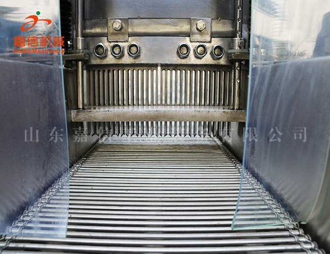 本機(jī)采用不銹鋼材料制作,設(shè)計合理。送肉鏈條可全盤托出,清洗方便,針頭排列為單針單管,設(shè)有自動保護(hù)裝置,當(dāng)注射針頭碰到硬物時,注射針自動彈起,不受損壞,真正達(dá)到了注射的肉無死角。