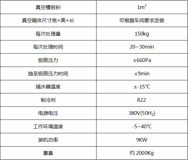 KKS-100熟食真空預(yù)冷設(shè)備的主要技術(shù)參數(shù):