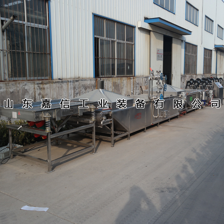 1、漂燙機主要用于蔬菜、花瓣類植物的加工使用。漂燙機的目的是保色的作用。漂燙機內(nèi)部的水分為熱水,加熱方式為電加熱或蒸汽加熱,大多采用蒸汽加熱的方式,這樣長期使用比較劃算。漂燙機在使用的過程中完全采用機械化操作,無需人工。物料通過網(wǎng)帶/輸送帶或者人工的方式把物料送進(jìn)漂燙機內(nèi),物料在漂燙機內(nèi)部的設(shè)備通過變頻控制,可以根據(jù)不同的產(chǎn)品工藝來設(shè)定漂燙的時間。一般樸湯完成的產(chǎn)品需要在經(jīng)過強流風(fēng)干機,把產(chǎn)品表面的殘留的水分吹干,這樣不影響下到工序的操作,減少人工等待的時間,增加了企業(yè)的效益。