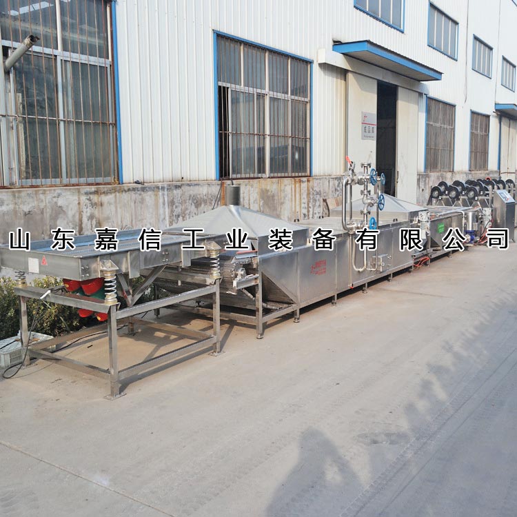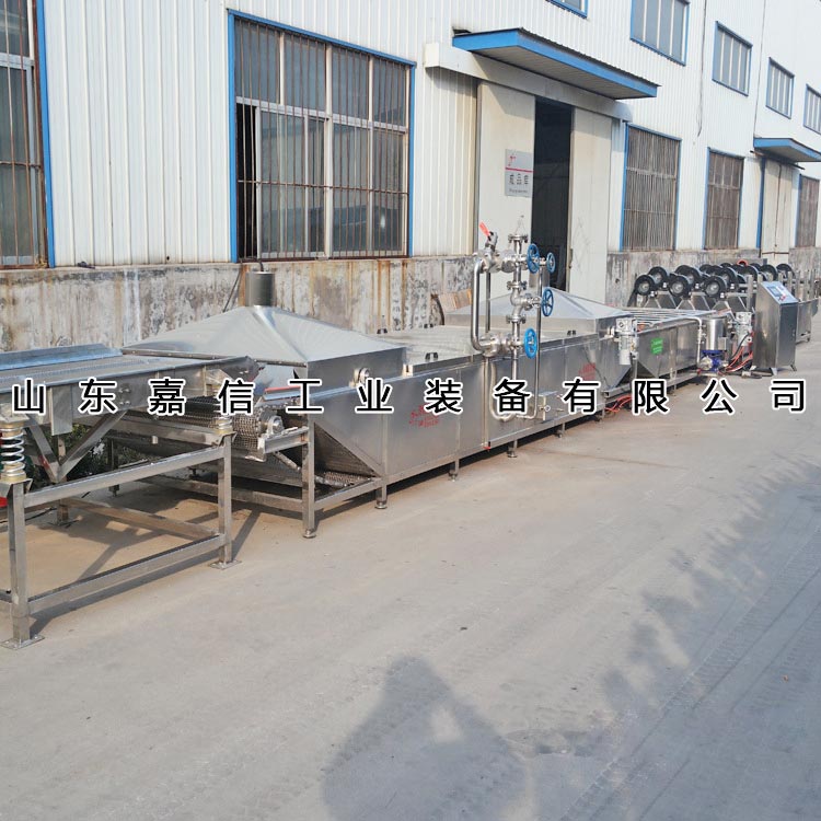 嘉信全自動解凍機(jī)的工作原理為:將需解凍的魚盤放進(jìn)加滿水的解凍池,用高壓氣泡將水快速翻騰,讓解凍魚塊在解凍池內(nèi)相互輕微碰撞、摩擦,并由代替人工(模仿人手工)的刮撥器使解凍魚塊慢慢的向前移動通過水低溫分解和氣泡翻滾,從而達(dá)到快速解凍的目的。解凍池旁邊有恒溫池(35℃恒溫水),水從恒溫池流入解凍機(jī)入料口處,隨著凍品的化冰解凍,網(wǎng)鏈上的產(chǎn)品向出料方向出料,解凍池內(nèi)的水溫保持恒溫狀態(tài),到出料這段時間,水再從解凍池進(jìn)入到恒溫池,這樣循環(huán)利用。保持水資源的循環(huán)利用,提高水資料選用率。使用全自動變頻型節(jié)水解凍機(jī)流水線設(shè)備既能降低成本,又能提高工作效率。
